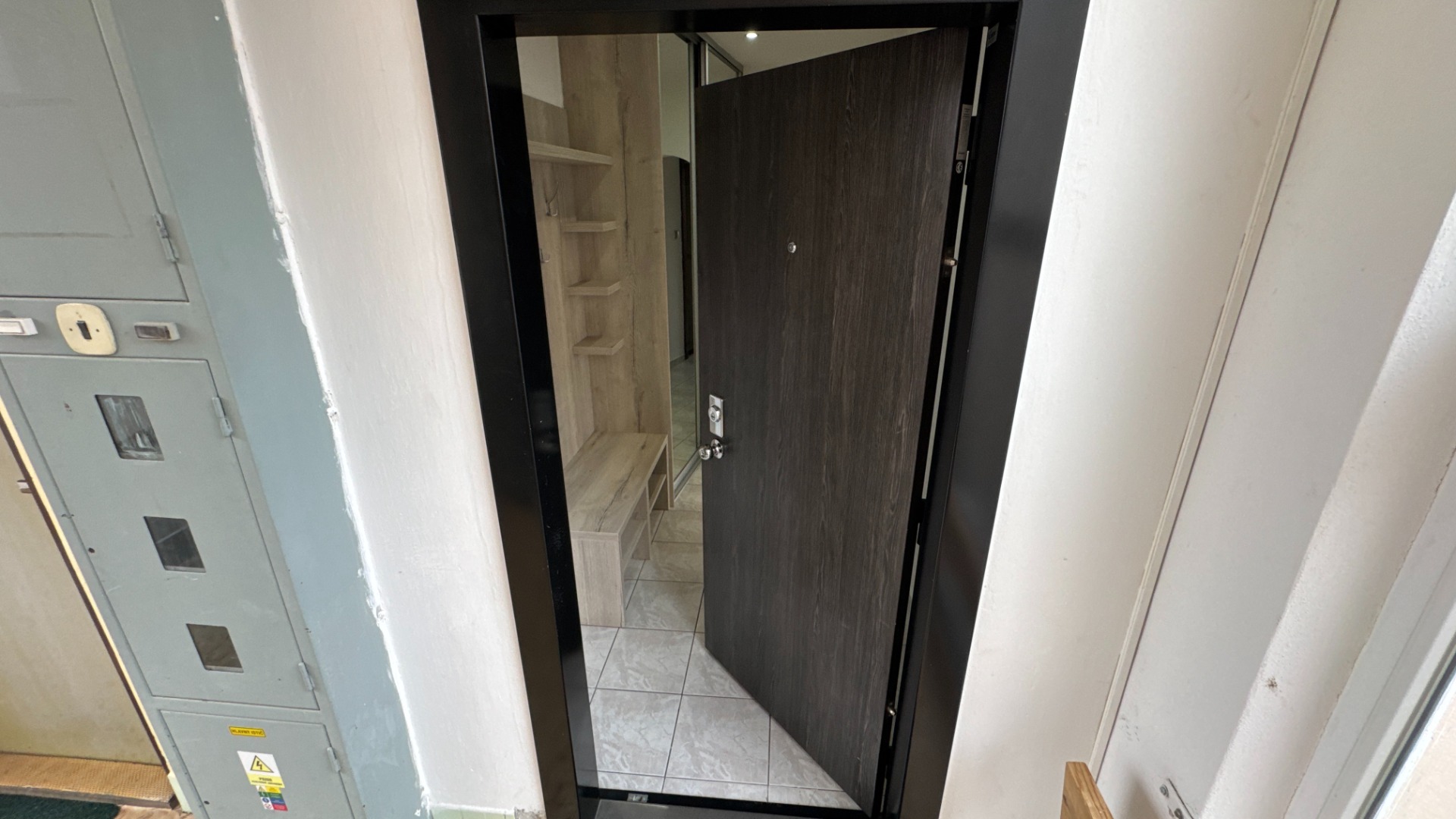 Veľkou výhodou je lodžia s keramickou dlažbou, ktorá je prístupná z obývacej izby aj kuchyne, čo poskytuje príjemné miesto na relax a posedenie.