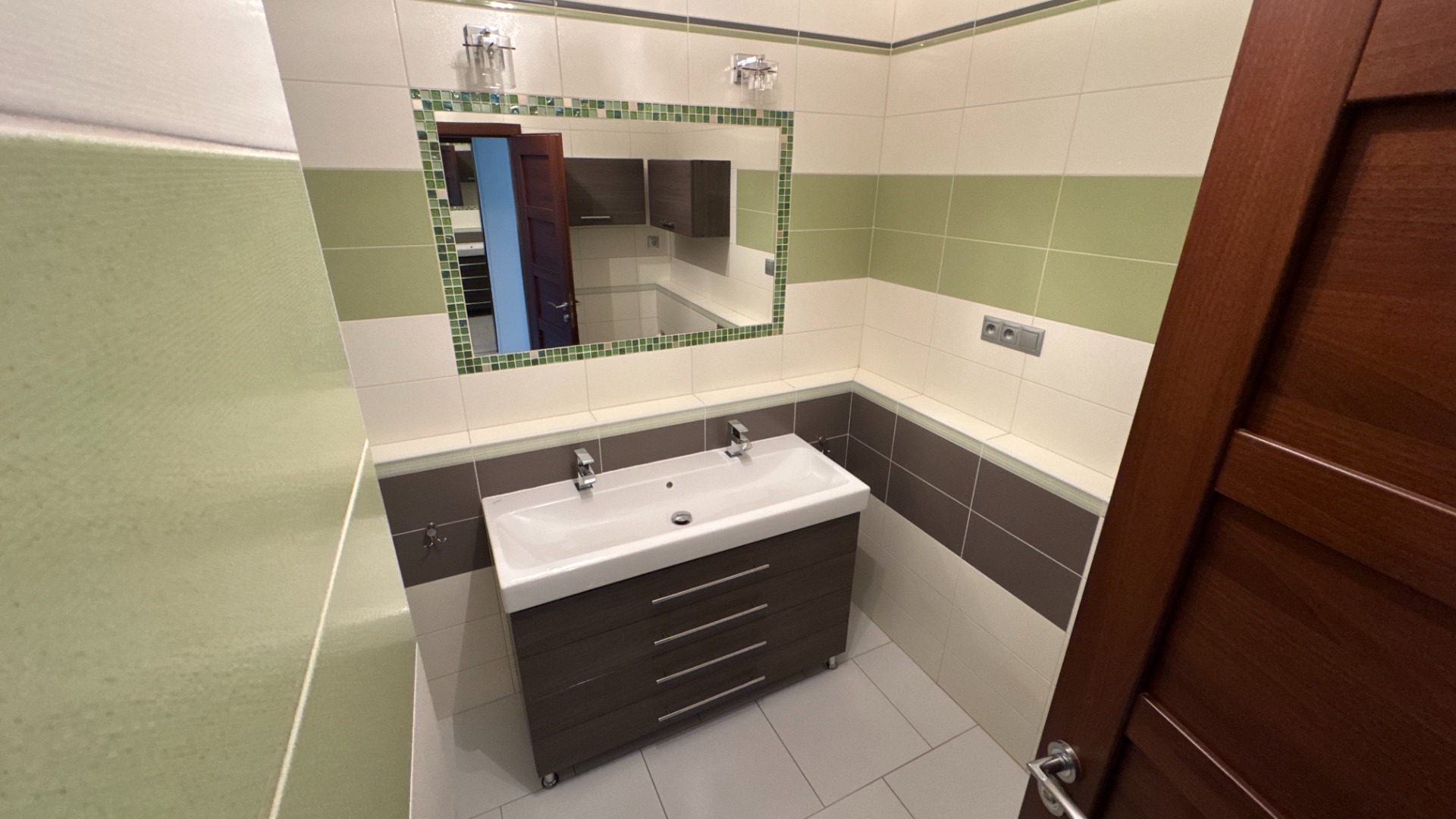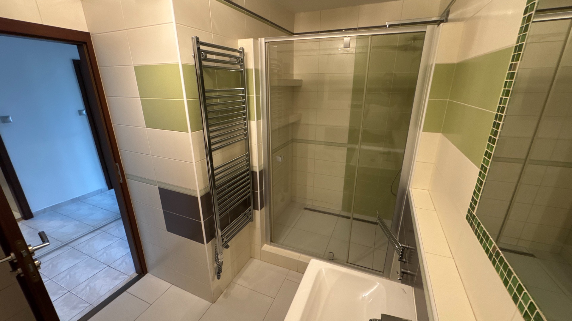 Jadro bolo kompletne vymurované, v kúpeľni je moderný sprchový kút, dvojité keramické umývadlo so skrinkou, vykurovací radiátor rebríkového typu a samostatné WC so zabudovanou nádržkou v stene.
